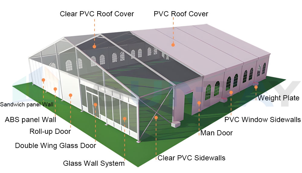 1. Aluminum alloy frame + double-layer PVC fabric: resists Category 10 winds, fire-retardant, temperature-resistant for stable outdoor use.