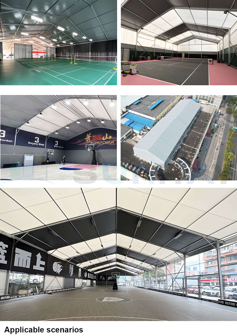 2. Customizable (3–50m width, 1–10m height, infinitely extendable) to fit sports, weddings, events, tourism projects.
