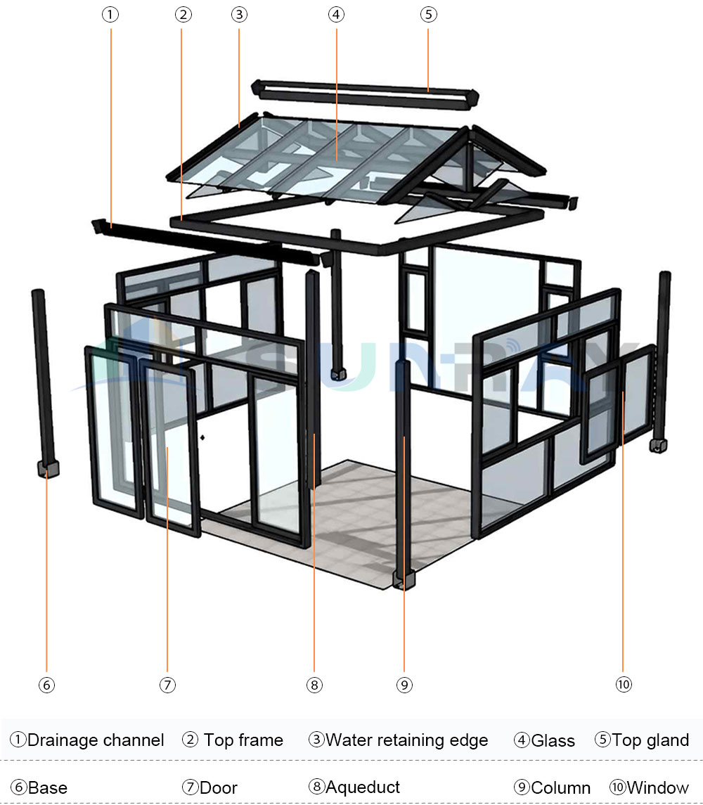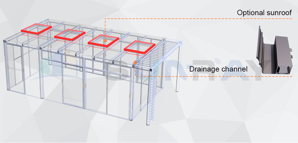 The pitched roof sun room ensures smooth drainage of rainwater and prevents leakage through inclined design, high-quality waterproof materials, sealing systems and drainage facilities.