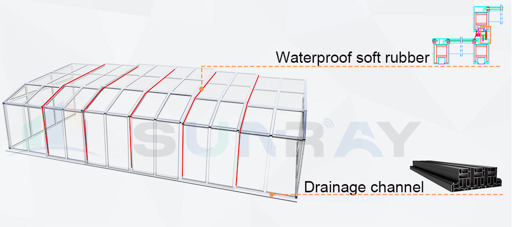 3. High-performance sealing strips + drainage channel: full waterproofing, keeps interior dry and comfortable in all weathers.