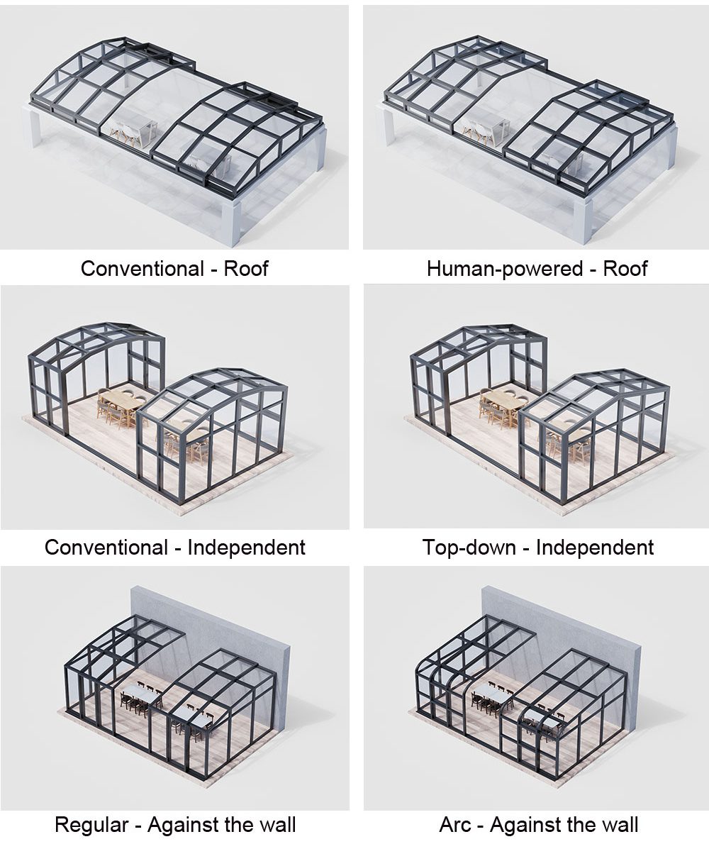 3. Sunroom profiles have undergone feasibility studies and have different volumes, thicknesses, surfaces, mechanical properties, durability and tolerance. Ensure load-bearing, wind resistance, snow resistance and fire resistance.