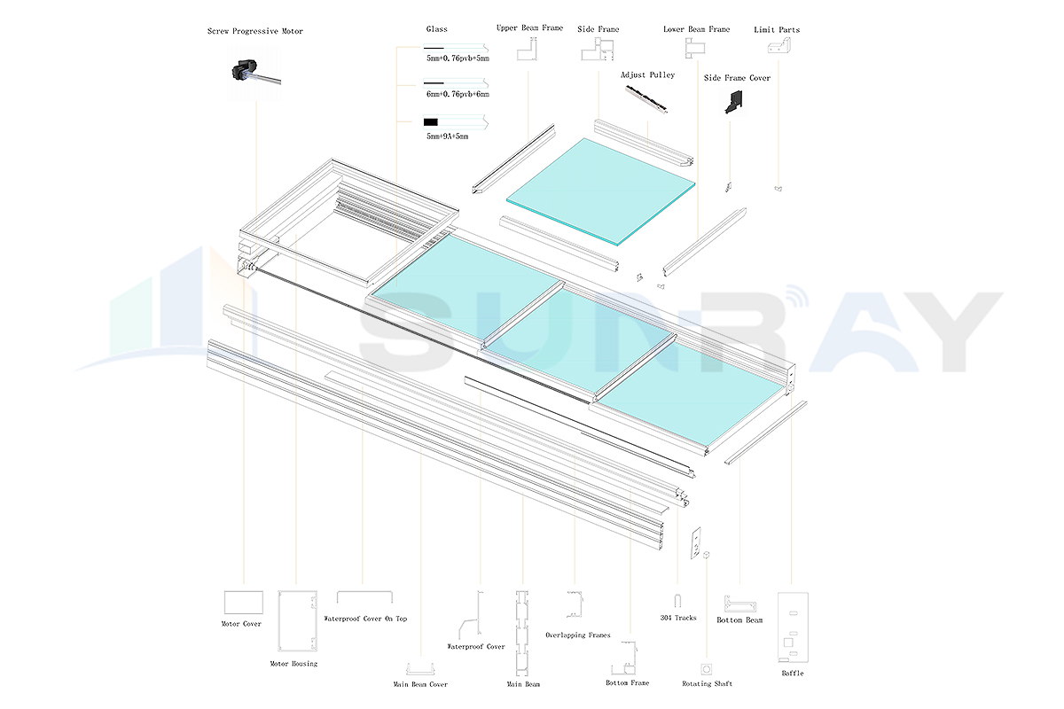 In order to meet the needs of different customers, Sunray provides personalized customization services. Customers can choose the appropriate skylight size and layout according to the structural characteristics of the family courtyard or interior. Whether it is a spacious open sun room or a compact modern apartment, the overlapping skylight design can provide the best lighting and ventilation effects.