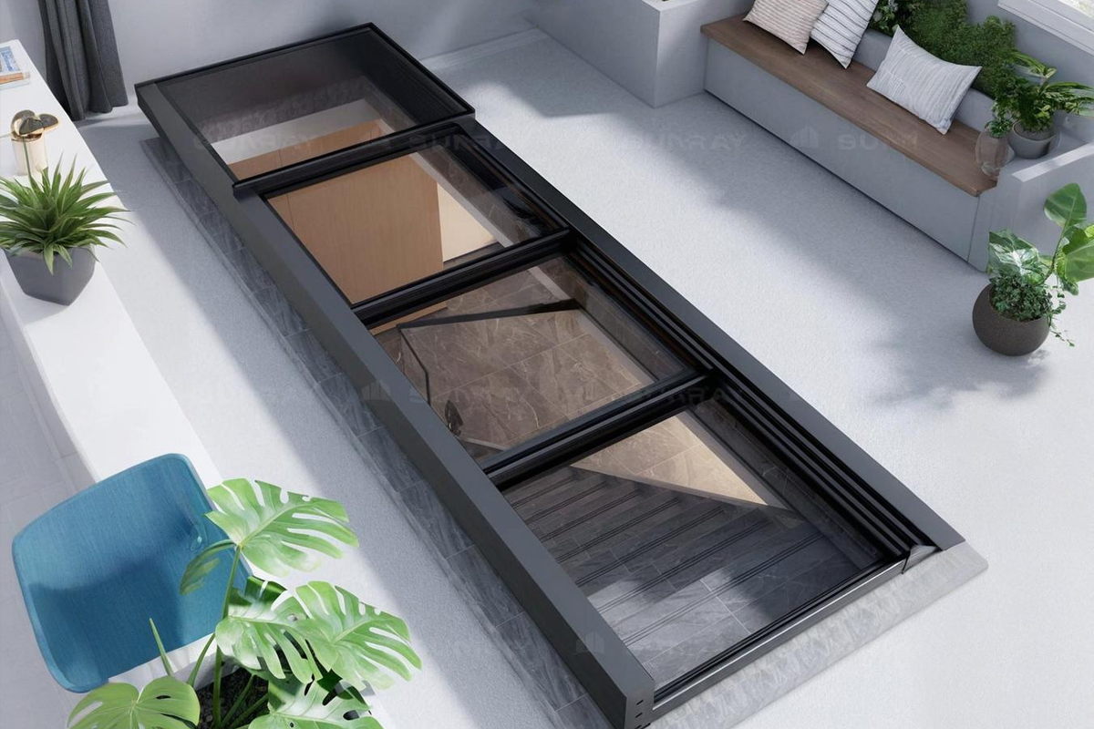 Sunray’s overlapping skylights use a multi-layered structure, allowing light to shine into the room at different angles while maximizing the natural lighting effect of the space. This design not only effectively enhances the brightness of the room, but also optimizes air circulation and improves indoor ventilation by flexibly adjusting the opening position. Whether it is the sun during the day or the starry sky at night, overlapping skylights can bring a seamless natural landscape experience.
