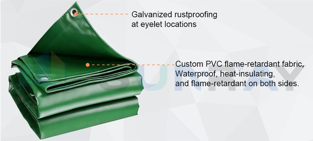 Heavy-duty PVC waterproof fabric, durable and sturdy, customizable colors, abrasion-resistant and tear-resistant, fire-retardant and flame-resistant.