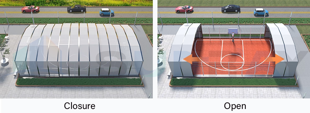 5. Galvanized fasteners + stainless steel track: stable structure, reliable operation, suitable for long-term outdoor sports facility use.