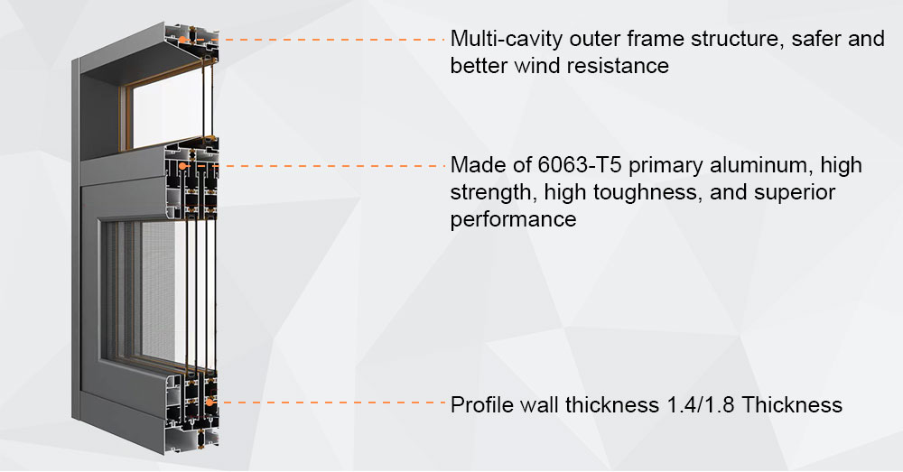 adopts anti-swing device, which effectively reduces the swinging of the window sash, improves the load-bearing capacity while preventing shaking, operates more smoothly and stably, and reduces the generation of noise, bringing a smooth and comfortable using experience.