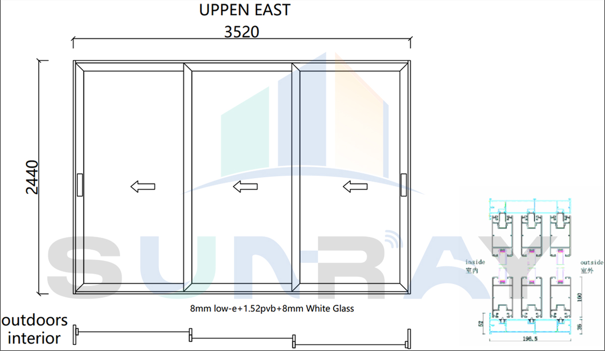 Adopting 6063-T5 broken-bridge aluminum alloy profiles, the whole house is fitted with 8mm low-e+1.52pvb+8mm white glass. The system features a multi-chamber sealing structure and hidden drainage, with anti-hurricane multi-point locking devices and anti-corrosion powder coating on profiles. A one-stop service is provided from customized design to on-site installation.