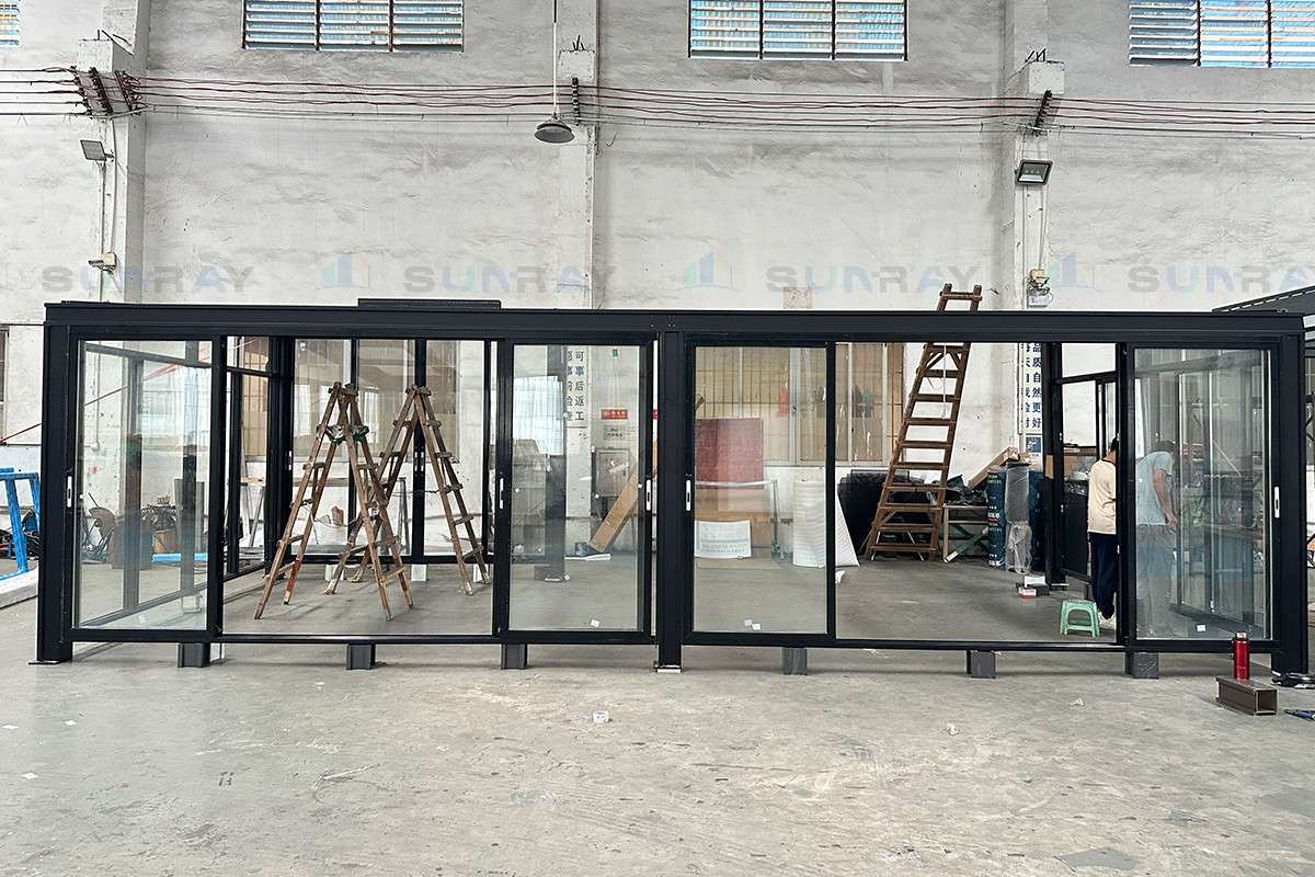 - Multi-functional configuration: motorized sunshade system provides flexible light control, 90-degree opening folding glass door realizes seamless indoor-outdoor connection, and integrated LED lighting meets the needs of nighttime use.