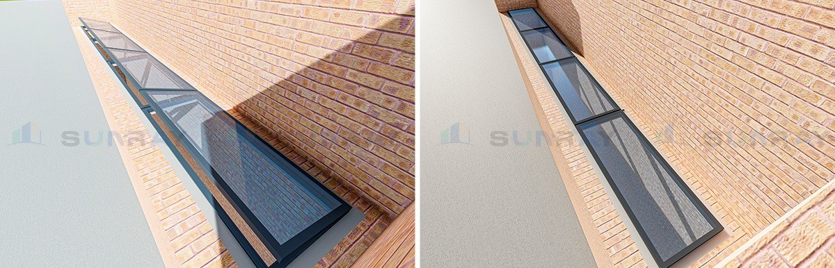 In response to these needs, we have adopted a high-strength aluminum alloy frame with Low-E toughened glass to ensure the durability and thermal insulation performance of the skylight. Meanwhile, the top-hung opening design combined with the electric control system can flexibly adjust the amount of ventilation, and with the built-in sunshade, it effectively reduces direct sunlight and enhances the comfort of the room.