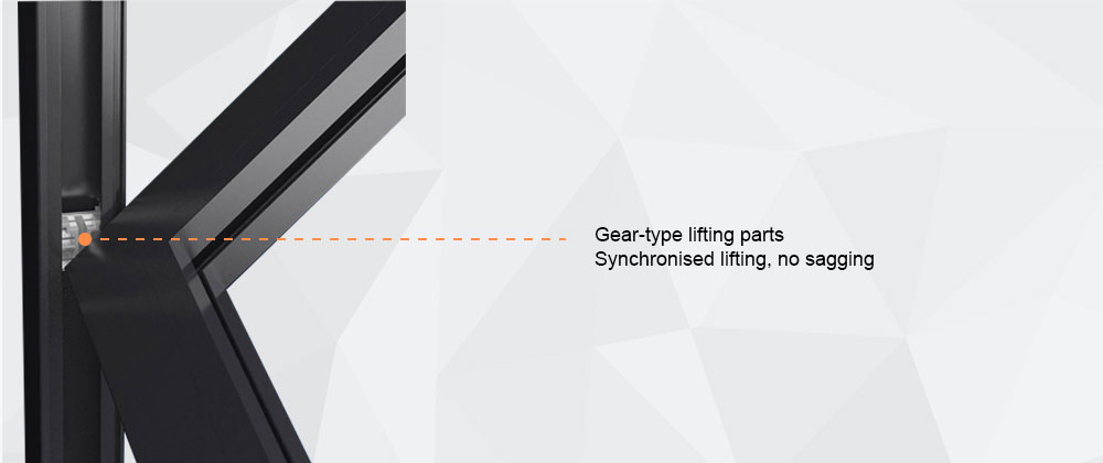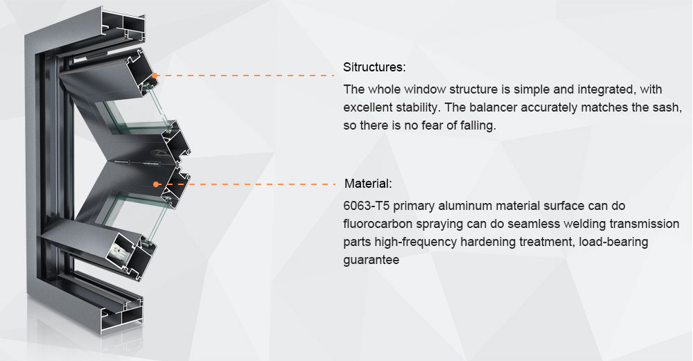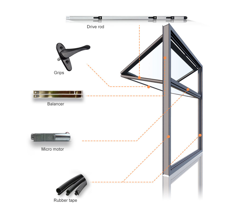 Physical structure realizes smooth opening after one-touch automatic unlocking Synchronized lifting of both sides of the rack and pinion engagement The window sash is equipped with a balancer, and the sash is positioned at the corners of the window to run smoothly under the slight drive of the motor.